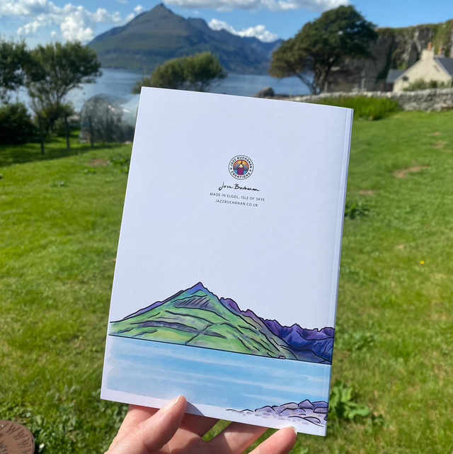Notebook or sketchbook with Jazz Buchanan’s Cuillin & Honeycomb Rock illustration