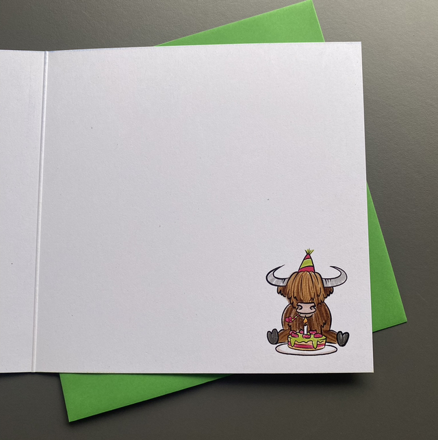 Highland cow birthday card printed on recycled paper - with a birthday greeting in Scottish Gaelic and English