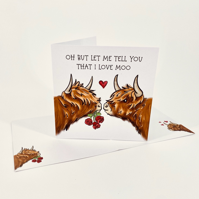 Highland Cow greeting card ‘Oh but let me tell you that I love moo’