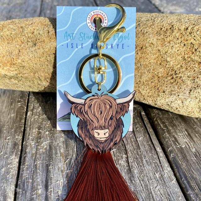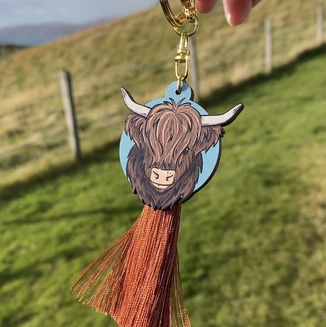 Elevate your keychain game with this Wooden Highland Cow Keyring featuring a charming tassel. Designed with attention to detail, this rustic accessory adds a touch of Scottish charm to your daily essentials. Carry a piece of the Highlands with you – a unique and stylish keyring that stands out wherever you go. Grab yours now for a bovine-inspired twist to your keys, bag, outfit, school bag or lots of other possibilities!