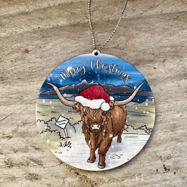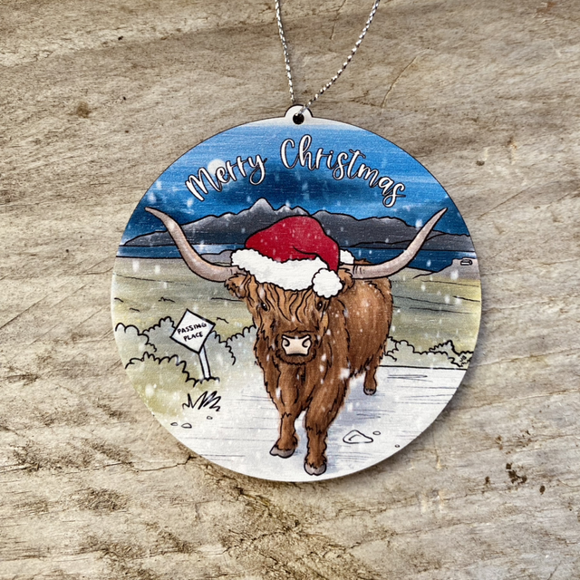 Highland Cow wooden Christmas tree ornament