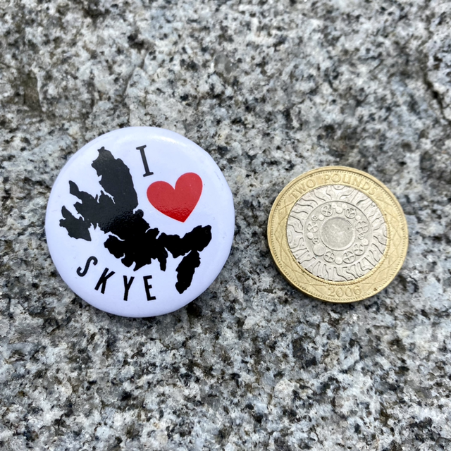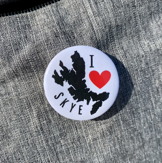 Love Skye? Then this Isle of Skye button badge is a perfect addition to your bag, jacket or whatever you want to attach it on! Available as a single badge or per 10-pack